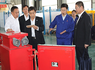 棗礦集團董事長、黨委書記劉成錄(左三),總經(jīng)理、黨委副書記滿慎剛(左四),副總經(jīng)理殷濤(左一),新遠大公司董事長(左二),黨委書記王培剛(后右)到公司親切指導。公司經(jīng)理羅賢峰(右二)陪同指導。