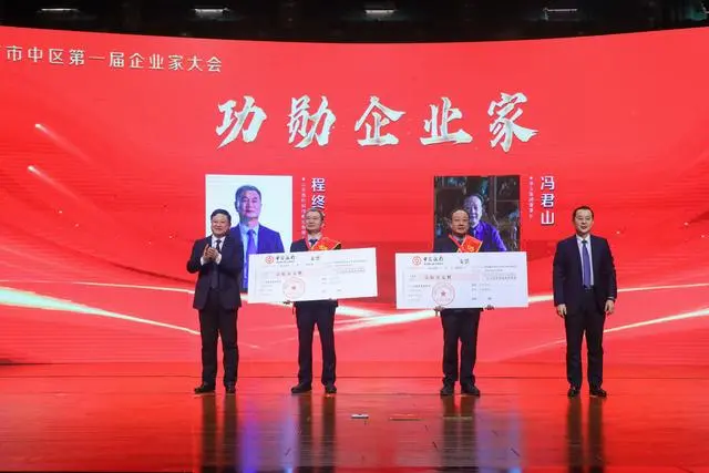 市中區(qū)委、區(qū)政府決定授予程終發(fā)、馮君山2名同志“市中區(qū)功勛企業(yè)家”稱號,每人獎勵稅后100萬元;授予牛迎東等4名同志“市中區(qū)優(yōu)秀企業(yè)家”稱號,每人獎勵稅后20萬元;授予李永利等13名同志“市中區(qū)行業(yè)領(lǐng)軍企業(yè)家”稱號,每人獎勵稅后10萬元,授予相增和等15名同志“市中區(qū)行業(yè)領(lǐng)軍企業(yè)家(提名獎)”,并向有關(guān)企業(yè)負責人頒發(fā)企業(yè)家服務(wù)“綠卡”。